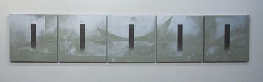 36"x 186" | Oil on Canvas | Five Canvases, each 36" x 36" square | 2" in depth | Canvas edges are silver